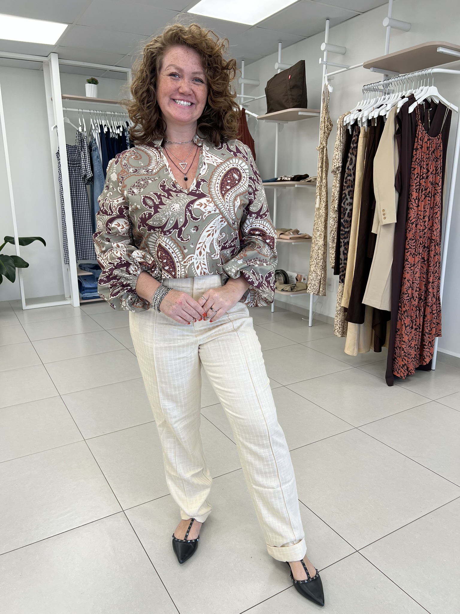 Peça essencial para quem busca um visual "boho-chic" com frescor e elegância, ela apresenta uma estampa paisley em tons terrosos e oliva que exala sofisticação. Sua modelagem fluida e os detalhes de acabamento tornam esta bata uma opção atemporal, capaz de transitar entre composições casuais e produções mais elaboradas com total praticidade.