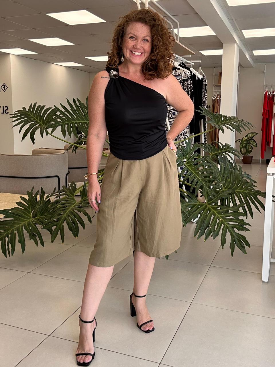 Estilo geral: Peça curinga para looks elegantes e modernos. Transita facilmente do casual chic às produções mais formais, permitindo combinações com camisas, regatas de tecido nobre, blusas estruturadas e sandálias de salto ou flats refinadas. Ideal para ambiente urbano, trabalho, eventos diurnos, encontros e ocasiões que pedem um visual elegante com conforto.