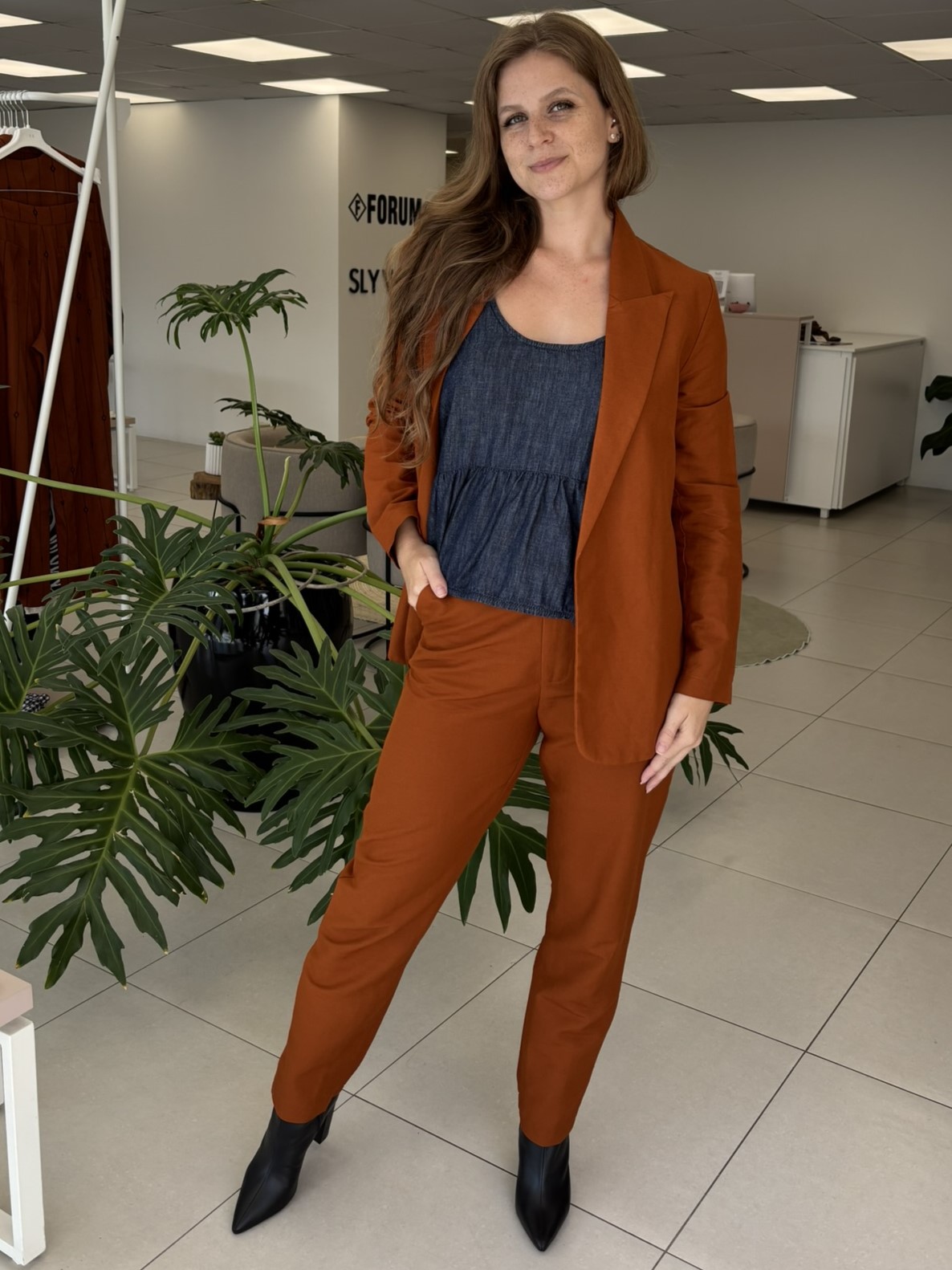 Cor: Terracota, uma tonalidade quente e moderna que é o destaque da coleção.