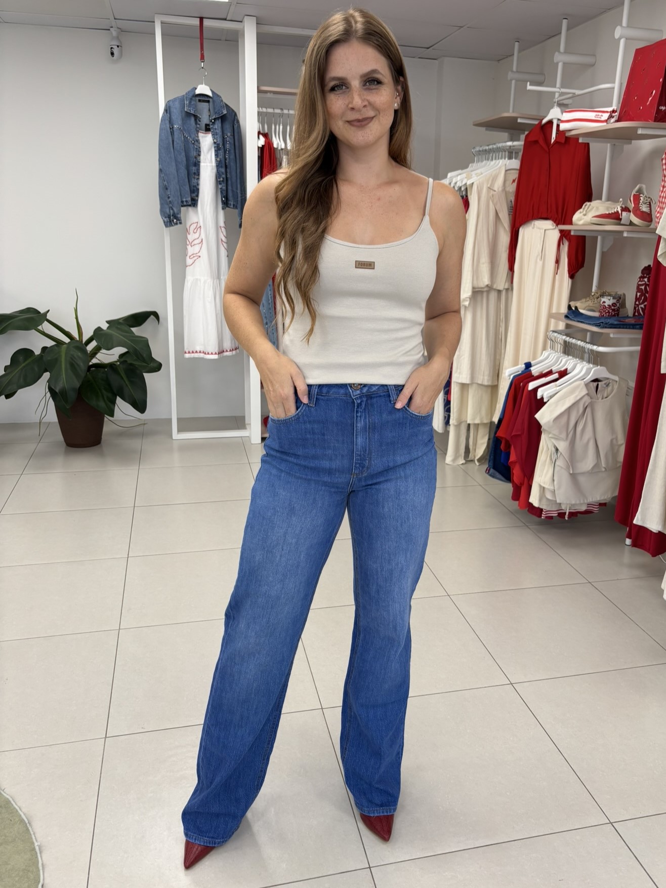 A Calça Jeans com lavagem vintage evoca estilo em uma peça super versátil .O equilíbrio perfeito entre o toque autêntico do algodão e a flexibilidade do elastano garante um "estado de férias" permanente, unindo conforto extremo a uma estética despojada e altamente sofisticada.