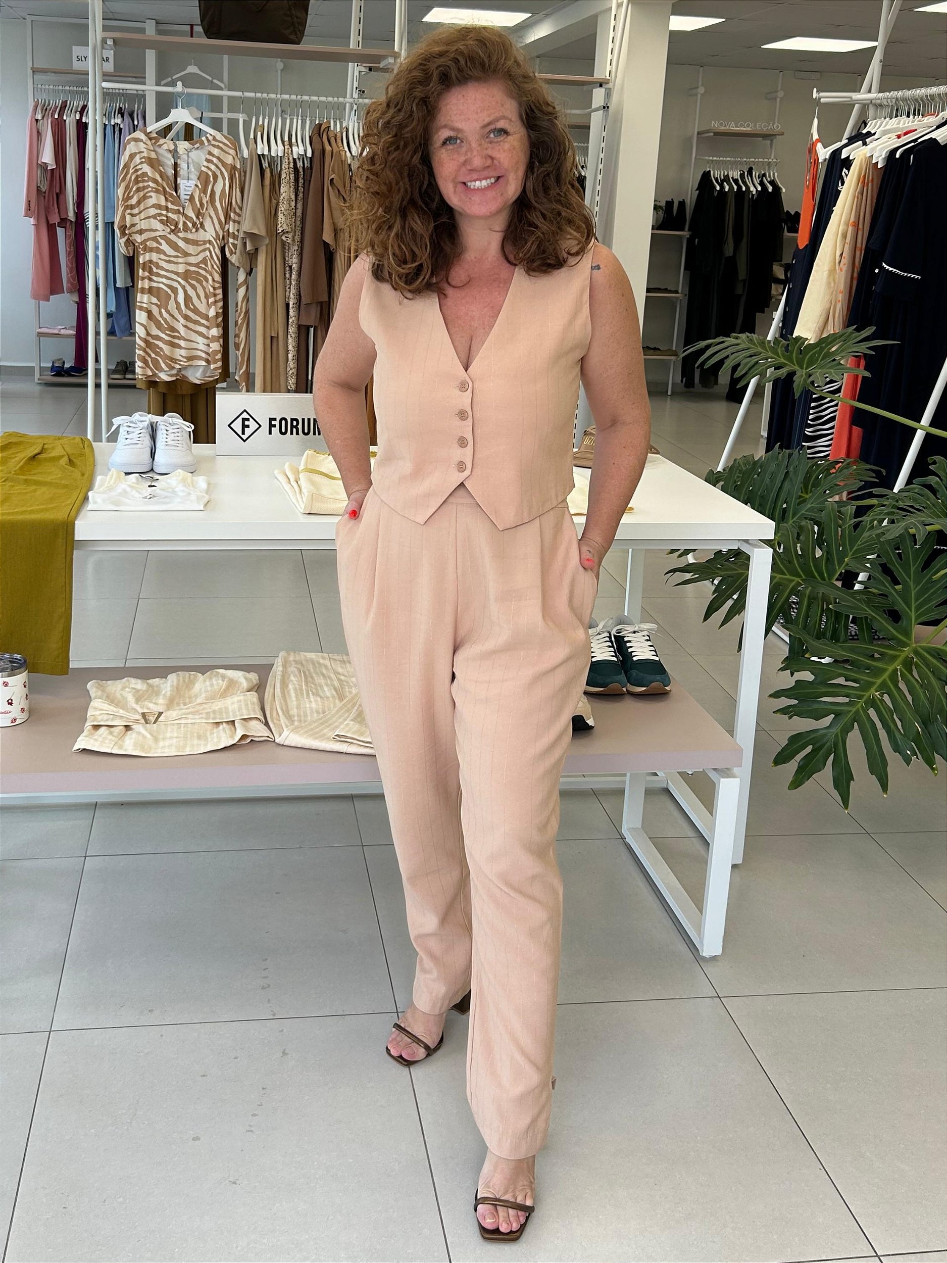 A peça que faltava para trazer um toque de modernidade e sofisticação ao seu guarda-roupa. Com um brilho sutil proporcionado pelos fios de lurex, ele eleva o conceito de alfaiataria clássica para um nível muito mais fashionista e iluminado. É a escolha perfeita para quem deseja um visual clean, mas com aquela pitada de brilho que a gente ama.