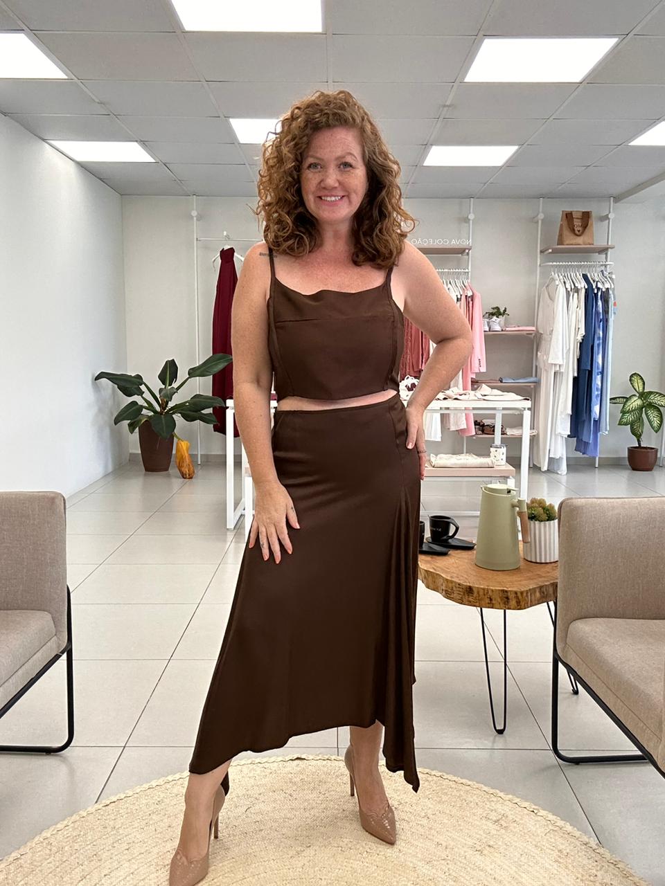 Caimento: O tecido leve e fluido da viscose, somado ao acabamento acetinado, proporciona um caimento impecável que acompanha os movimentos. As alças finas e reguláveis permitem que você ajuste o decote e a altura da peça conforme sua preferência.