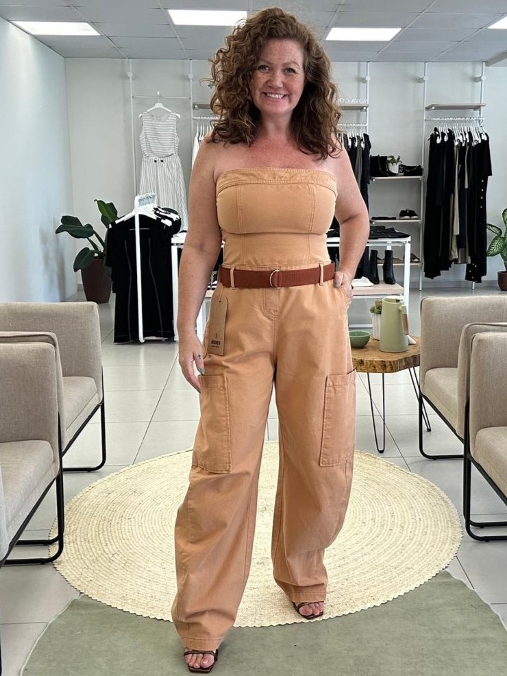 Este macacão apresenta uma estrutura impecável que valoriza a silhueta, enquanto os detalhes de bolsos cargo e o busto tomara que caia trazem um ar fashionista e moderno. Uma peça única e poderosa, ideal para quem busca praticidade com máxima elegância.