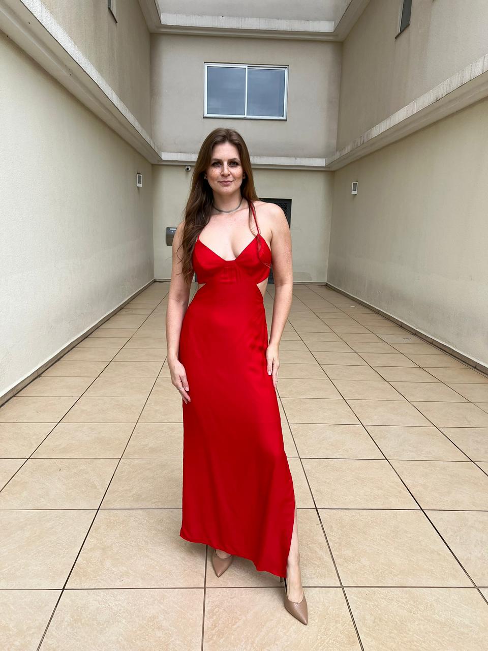 Cor: Vermelho intenso, vibrante e sofisticado, ideal para ocasiões especiais.